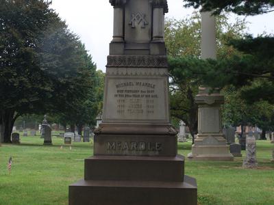 This is the tombstone for an ancestor of mine. The symbol looks similar to the Masonry symbol but I can not confirm this. Can someone help me? As far as I know, he owned a liquor business in his thirties up until his death. I can not find any history of what he did after he came to America in his late teens until his thirties.
